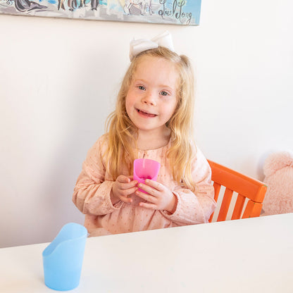 These flexible cups are an improved design that stimulate the lips & cheeks and allow someone to drink without head or neck extension. The generous open design allows easy viewing of lip and tongue movement. New volume markings on the sides make measuring fluid intake a breeze. Now also includes a fun smiley face on the bottom of the cup!